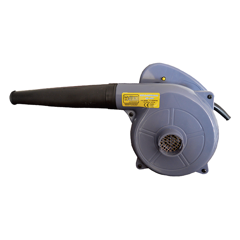 Soplo aspirador DaVinci de 350 W y 13,000 RPM, ideal para limpieza rápida y eficiente de polvo, hojas y residuos ligeros. Su función de soplado y aspirado lo hace práctico para talleres, hogares, jardines y equipos electrónicos.